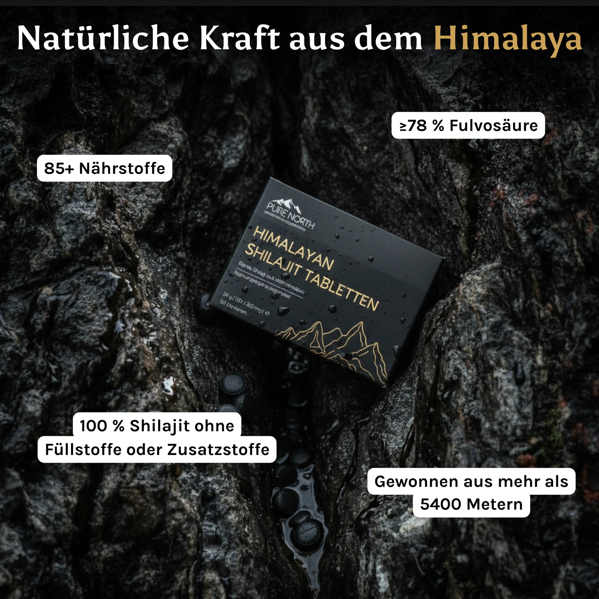 Unser Shilajit ist von höchster Qualität, da es in über 5400 Metern Höhe im Himalaya gewonnen wird und mindestens 78 % Fulvosäure enthält, im Gegensatz zu anderen Marken, die oft nur etwa 60 % enthalten. Das macht Pure North Shilajit extrem stark und effektiv.