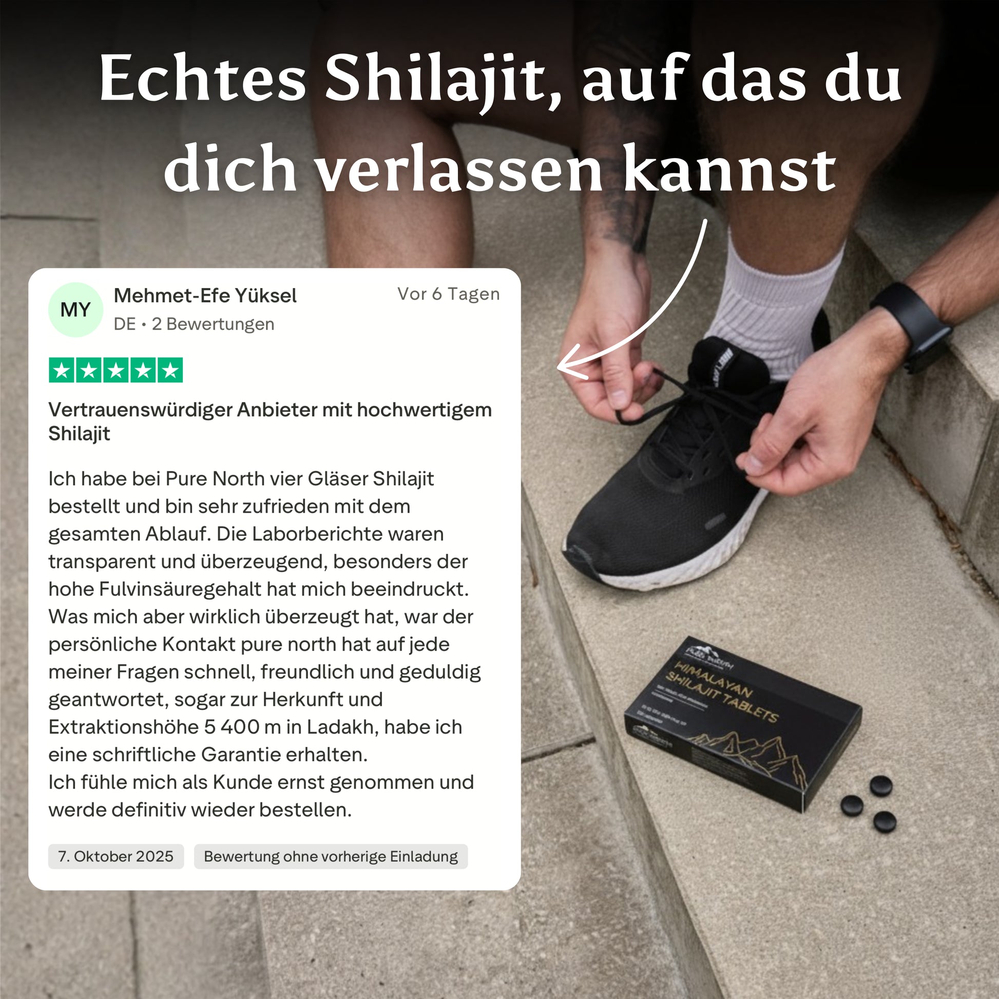 Weil wir wissen, dass unser Produkt eine wirklich hohe Qualität hat. Wir ermutigen unsere Kunden sogar, unser Produkt mit anderen Marken zu vergleichen, bevor sie sich entscheiden. So sicher sind wir, dass wir das beste Shilajit auf dem Markt anbieten.