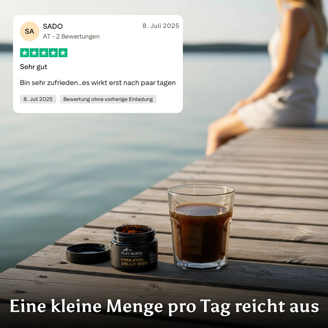 Das kann je nach Faktoren wie Lebensstil, Gesundheit und Dosierung variieren. Normalerweise spürst du die Wirkung schon nach ein paar Wochen. Es wird empfohlen, Shilajit mindestens 3 Monate lang einzunehmen, um die volle Wirkung zu erzielen.