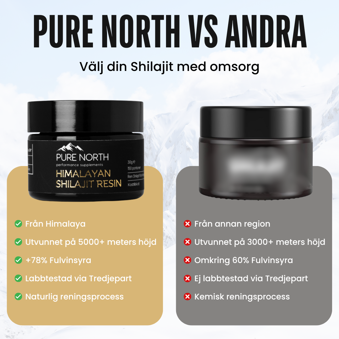 Nå din fulla potential med Pure North's 100% rena Shilajit från Himalaya. Boostad med över 85 naturliga mineraler, vitaminer och mikronäringsämnen som hjälper dig att prestera på topp både mentalt och fysiskt.
